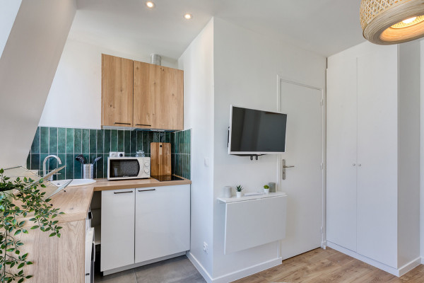 Un de nos chasseurs sur place lui a proposé cette très belle opportunité dans la ville de Courbevoie. Il s'agit d'un studio qui se trouve au 5ème étage sans ascenseur. L’immeuble est en bon état et les parties communes étaient en cours de rénovation. D'ailleurs, l'appartement était lui aussi à rénover et nos équipes ont réalisé un excellent travail sur ce point.